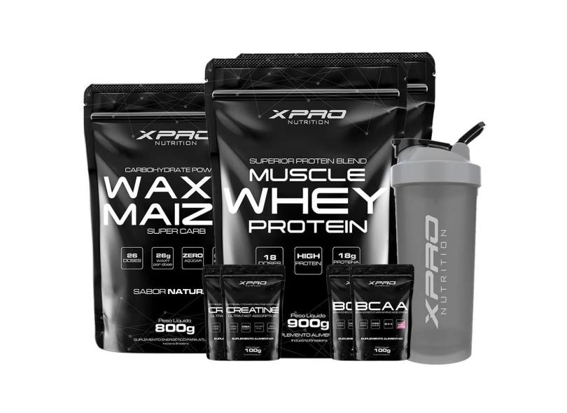Kit 2X Whey Muscle 900G + Waxy Maize 800G+ 2X Creatina 100G + 2X Bcaa100g + Coqueteleira 700Ml-Xpro