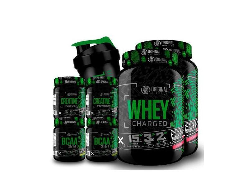 Kit 2X Whey Protein Charged + 2X Creatina + 2X Bcaa + Shaker - Esparta
