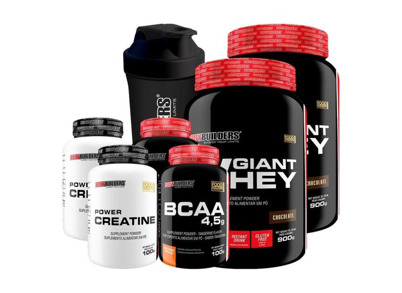 KIT -2x Whey Protein Giant Whey 900g +2x Creatina 100g +2x BCAA 4,5 100g +Coqueteleira -BB-Unissex