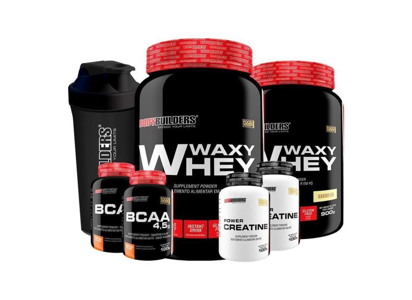 KIT - 2x Whey Protein Waxy Whey 900g + 2x BCAA 100g + 2x Creatina 100g + Coqueteleira - BB-Unissex