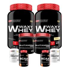 O menor preço encontrado no Brasil para Kit 2x Whey Protein Waxy Whey 900g+2x creatina 100gr+2 glutamina 300gr +2x BCAA 4,5 100gr-BB-Unissex atualmente é R$ 143,92.
