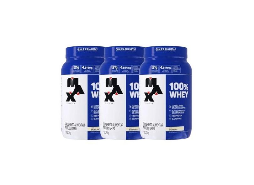O menor preço encontrado no Brasil para Kit 3 100% Whey Max Titanium Pote 900g Baunilha Suplemento atualmente é R$ 440,00.