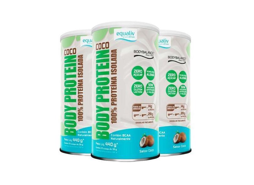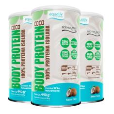 O menor preço encontrado no Brasil para Kit 3 Body Protein Equaliv 440G Coco atualmente é R$ 769,00.