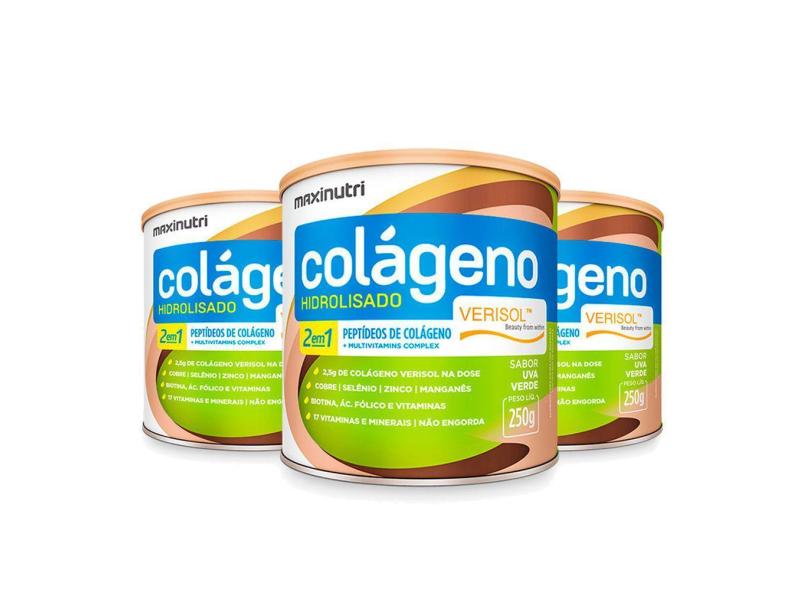 Kit 3 Colágeno em Pó Hidrolisado Verisol Lata 250g Uva Verde