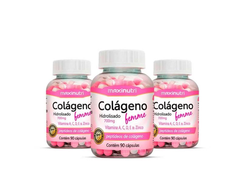 Kit 3 Colágeno Femme Maxinutri Vitaminas E Zinco 90 Cápsulas