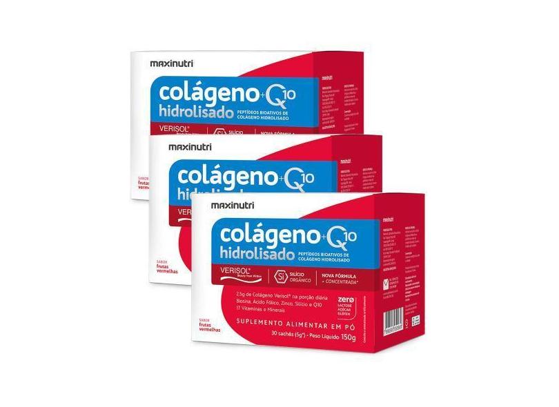 Kit 3 Colágeno Verisol 30X5g Frutas Vermelha + Q10 Maxinutri