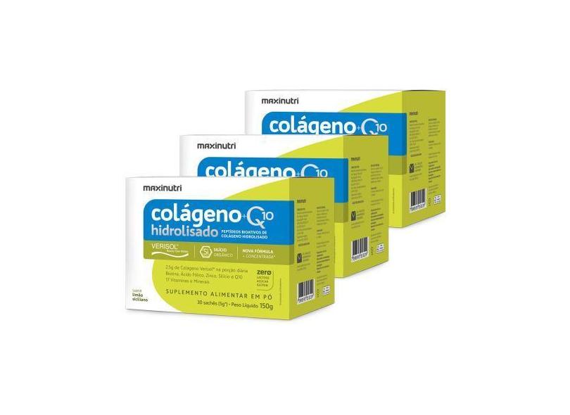 Kit 3 Colágeno Verisol Sachê Limão Siciliano + Q10 Maxinutri