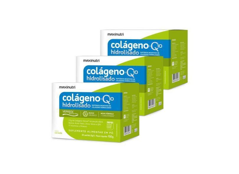 Kit 3 Colágeno Verisol Sachês Uva Verde 30x5g + Q10 Maxinutri