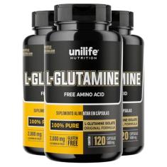 Kit - 3 L-Glutamina 100% pura Unilife 120 cápsulas