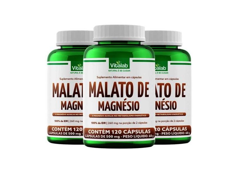 O menor preço encontrado no Brasil para Kit 3 Malato De Magnésio Vitalab 500Mg 120 Cápsulas atualmente é R$ 152,99.