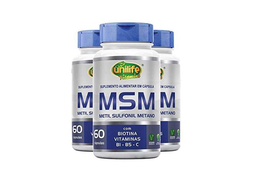 Kit 3 MSM Metil Sufonil Metano + Biotina e Vitamina Unilife 60 cápsulas