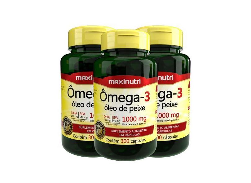 Kit 3 Ômega 3 Óleo de Peixe 300 Cápsulas 1000mg Maxinutri