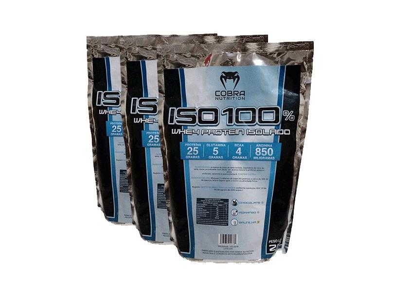 Kit 3 Pacotes Whey Iso 100 6 Kilos Chocolate Cobra Nutrition