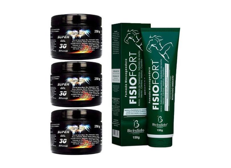 Kit 3 Super Gel 30 Ervas 250G + 1 Pomada Fisio Fort 150G - Bio Instint