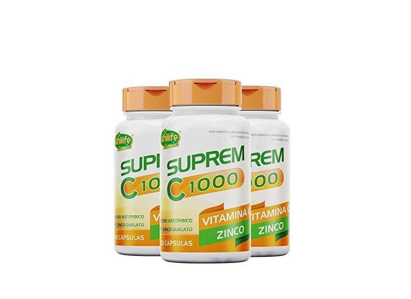 O menor preço encontrado no Brasil para Kit 3 Suprem C 1000 Vitamina C 1000 mg + Zinco 7mg Unilife 30 cápsulas atualmente é R$ 60,36.