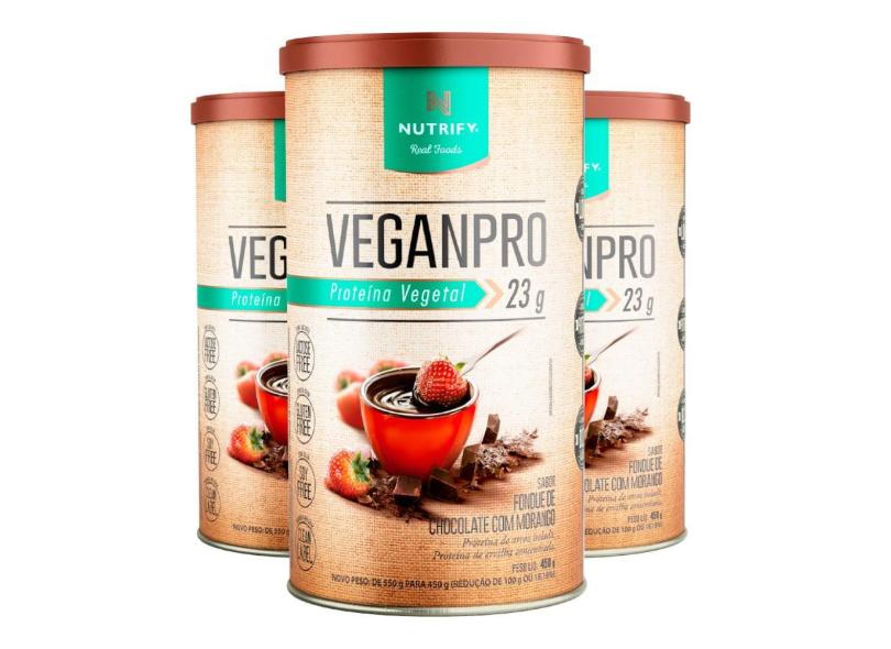 O menor preço encontrado no Brasil para Kit 3 Veganpro Proteína Vegetal Chocolate Com Morango Nutrify 450G atualmente é R$ 531,73.