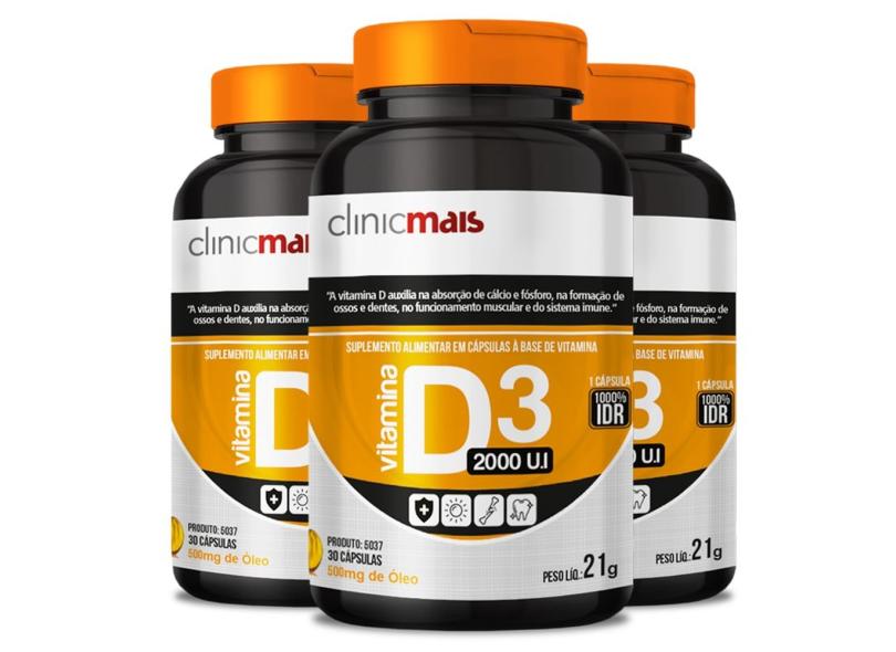 O menor preço encontrado no Brasil para Kit 3 Vitamina D3 2000 U.I 500mg ClinicMais 30 cápsulas atualmente é R$ 39,90.
