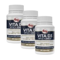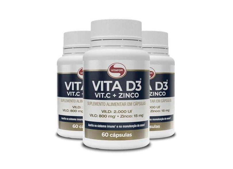 O menor preço encontrado no Brasil para Kit 3 Vitamina D3 + C + Zinco Vitafor 60 cápsulas 1g atualmente é R$ 189,90.