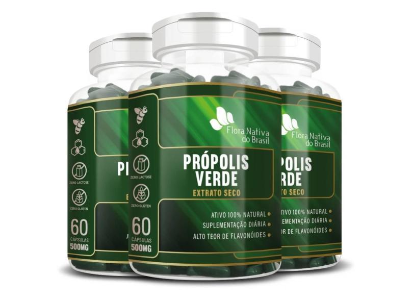 O menor preço encontrado no Brasil para KIT 3X Extrato de Própolis Verde 500mg 60 cápsulas - Flora Nativa atualmente é R$ 85,00.