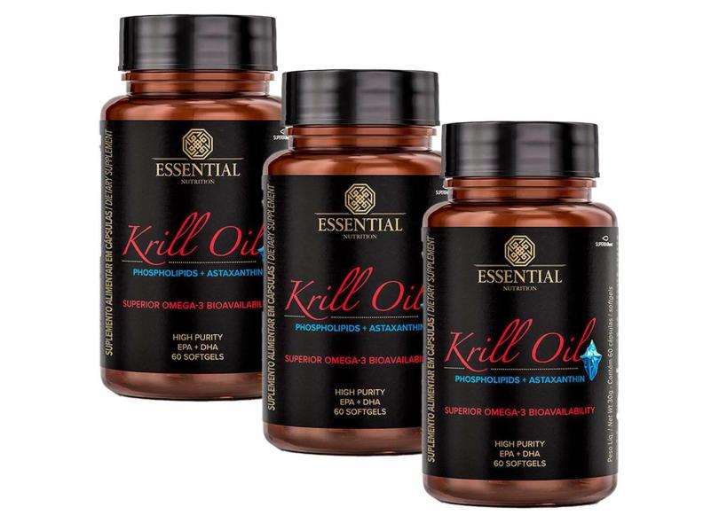 Kit 3X Krill Oil Omega 3 + Astaxantina - (60 Softgels Cada) - Essential Nutrition