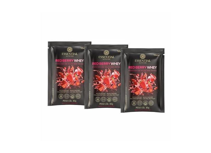 Kit 3X: Red Berry Whey Sachê Essential Nutrition 30g