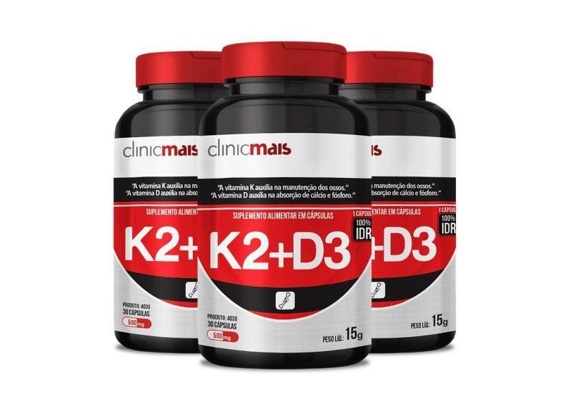 Kit 3X Vitamina K2 + Vitamina D3 30 Cápsulas Clinicmais