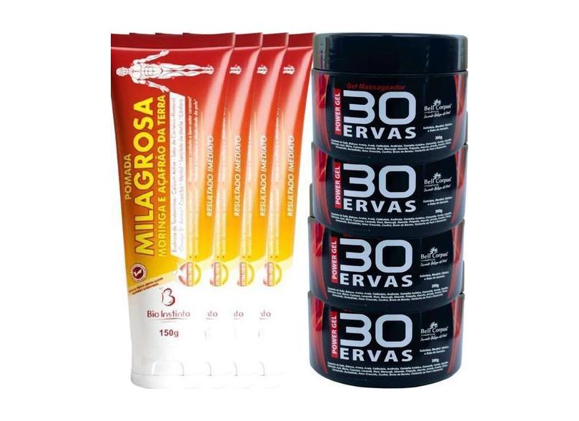 Kit 4 Gel 30 Ervas Power 300G + 4 Pomada Massageadora Milagrosa 150G -
