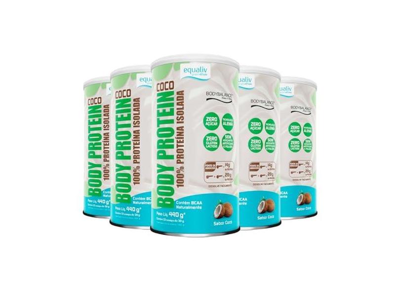 O menor preço encontrado no Brasil para Kit 5 Body Protein de Coco Equaliv 440g atualmente é R$ 1.120,90.