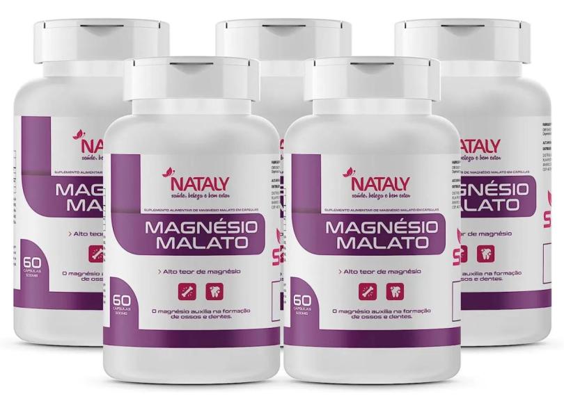 Kit 5 Magnésio Malato Premium 60 Cápsulas De 500Mg Nataly