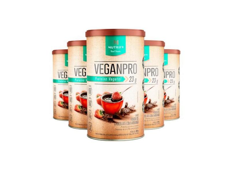O menor preço encontrado no Brasil para Kit 5 Veganpro Proteína Vegetal Chocolate Com Morango Nutrify 450G atualmente é R$ 863,70.