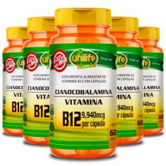 Kit 5 Vitamina B12 Cianocobalamina 60 cápsulas Unilife