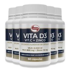 Kit 5 Vitamina D3 + C + Zinco Vitafor 60 cápsulas 1g