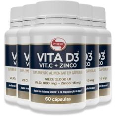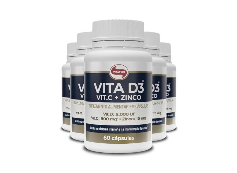 O menor preço encontrado no Brasil para Kit 5 Vitamina D3 + C + Zinco Vitafor 60 cápsulas 1g atualmente é R$ 319,90.