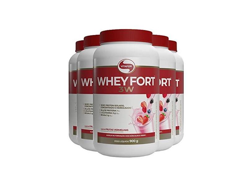 Kit 5 Whey Fort 3W Vitafor Frutas Vermelhas 900g