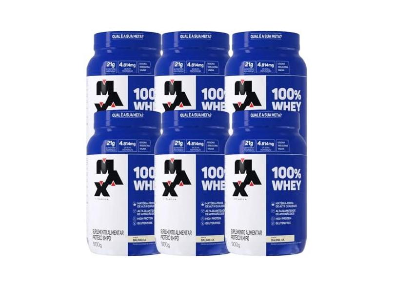 O menor preço encontrado no Brasil para Kit 6 100% Whey Max Titanium Pote 900g Baunilha Suplemento atualmente é R$ 857,00.