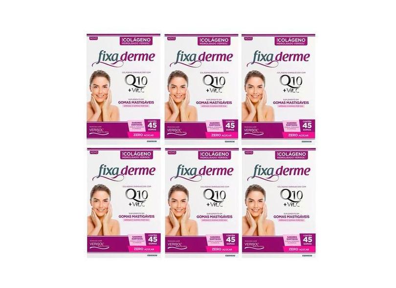 Kit 6 Goma Fixa Derme Q10 Colageno Hidrolisado Verisol Mastigável Todo