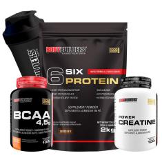 Kit 6 Six Protein 2kg Baunilha + BCAA 4,5 100g + Creatina 100g + Coqueteleira – Bodybuilders-Unissex
