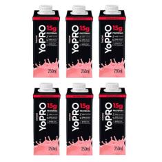 Kit 6 Yopro Bebida Láctea com Morango 15g de proteínas 250ml cada