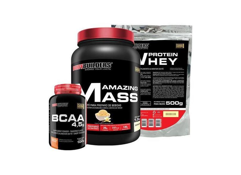 Kit Amazing Mass 1,5Kg+ Whey Protein 500G+ Bcaa 100G - Bodybuilders