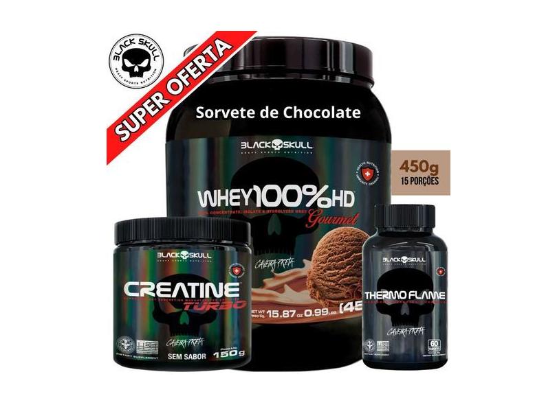 Kit Black Skull - Whey 100% HD POTE Gourmet 450g + Creatina Monohidrat