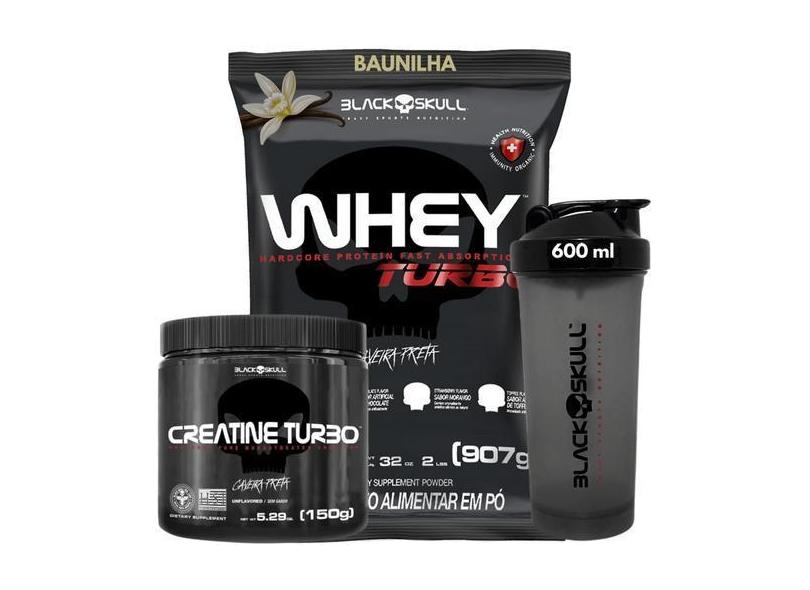 O menor preço encontrado no Brasil para Kit Black Skull Whey Protein Turbo Concentrado 907G+ Creatina Monohidr atualmente é R$ 153,99.