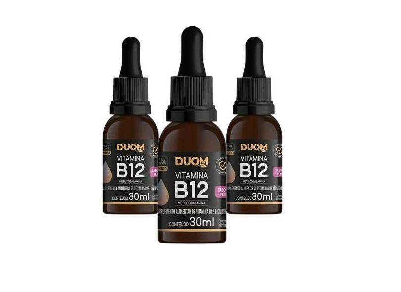 O menor preço encontrado no Brasil para Kit C/3 Vitamina B12 Gotas 30Ml Frutas Vermelhas - Duom atualmente é R$ 81,21.