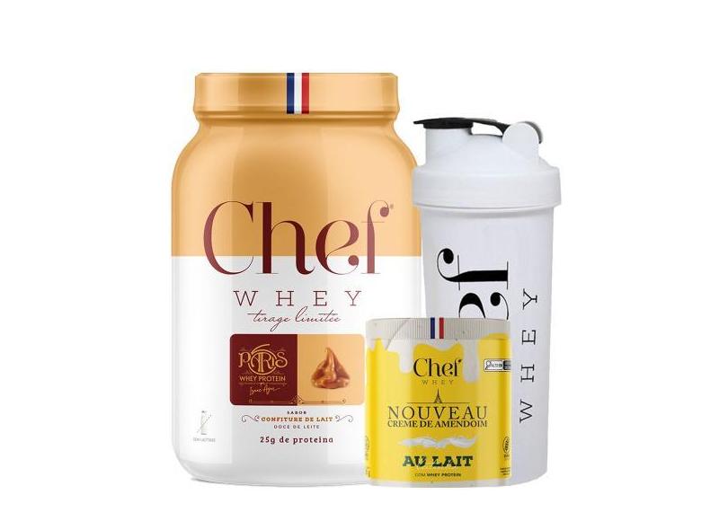 O menor preço encontrado no Brasil para Kit Chey Whey Paris 6 + Creme de Amendoim + Coqueteleira - Chef Whey, atualmente é R$ 259,99.