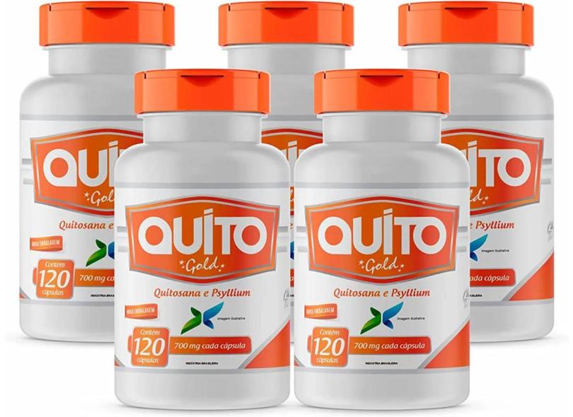 Kit Com 05 Quito Gold - Quitosana Com Psyllium 120 Cápsulas De 700Mg Promel