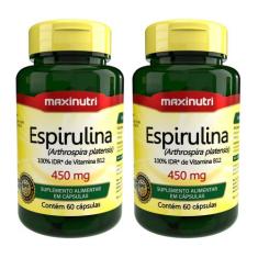 O menor preço encontrado no Brasil para Kit com 2 Espirulina 450mg 60 Cápsulas Maxinutri atualmente é R$ 64,00.