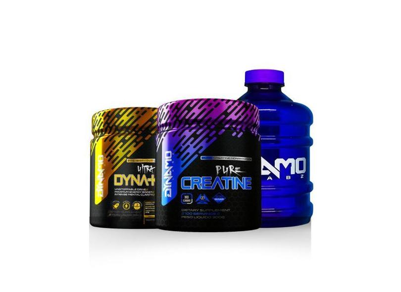 Kit Creatina 100% Pura 150g + Pré-treino Dyna'Kout 360g + Galão ou Coq
