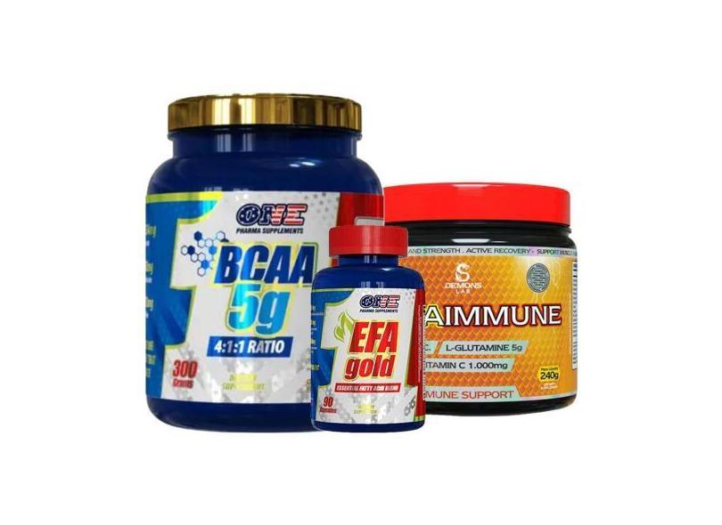 Kit Glutamina 240G Demons Lab + Bcaa Em Pó 300G + Efa Gold One Pharma