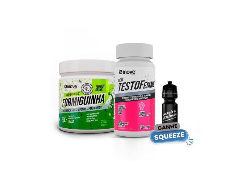 O menor preço encontrado no Brasil para Kit Testofemme + Formiguinha Pré-treino Inove Sports Ganhe 1 Squeeze atualmente é R$ 130,11.
