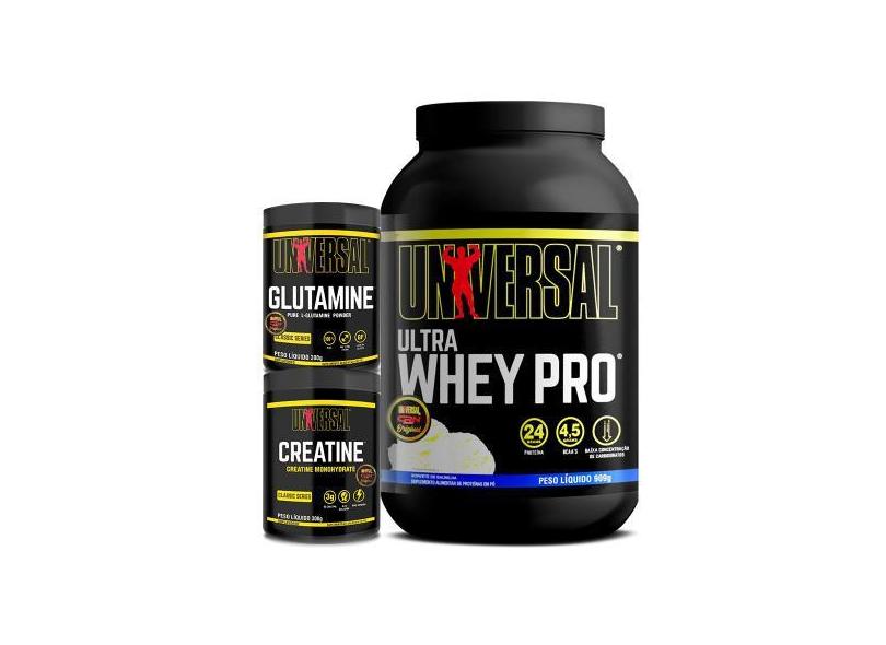 O menor preço encontrado no Brasil para Kit Ultra Whey Pro 900G + Creatine 300G + Glutamine 300G - Universal atualmente é R$ 349,99.