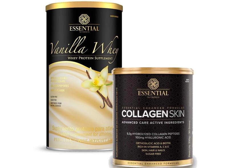 O menor preço encontrado no Brasil para KIT VANILLA WHEY PROTEIN 450G + COLLAGEN SKIN 330G ESSENTIAL Essential Nutrition atualmente é R$ 470,93.